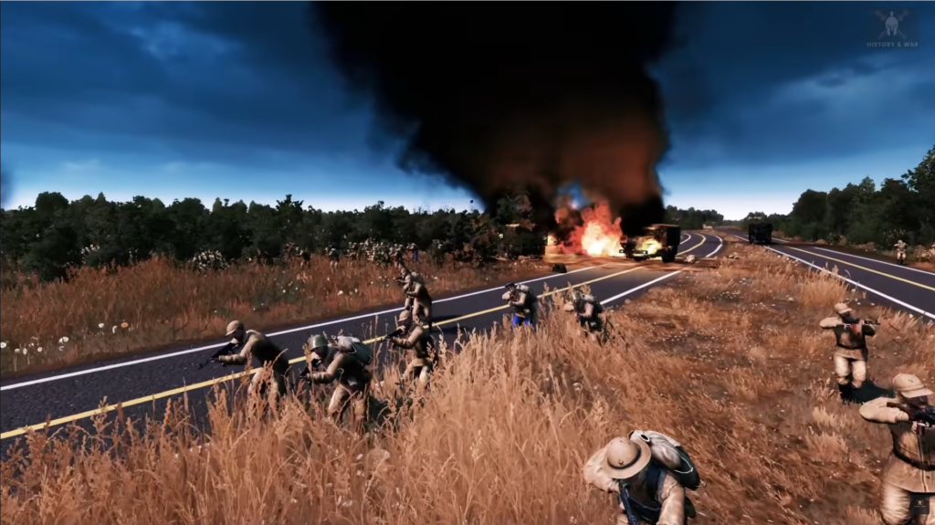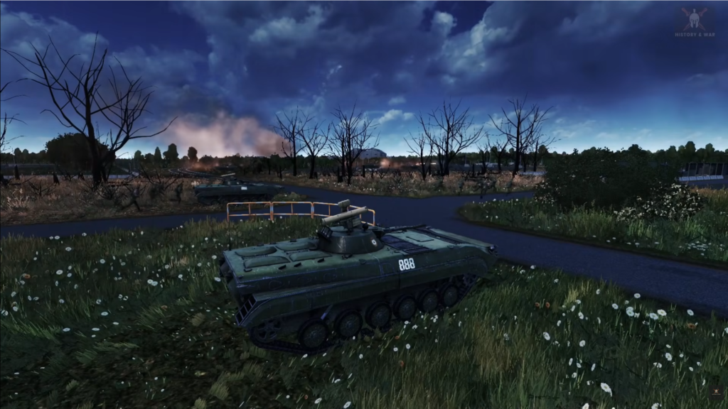 The Iraqi forces continued to move down the 6th Ring Road, seemingly unaware of the situation. A convoy of cargo trucks, carrying soldiers, passed in front of the 8th Battalion. The Kuwaiti forces engaged the trucks, prompting several hundred Iraqi soldiers to dismount. However, instead of preparing to fight, most of the soldiers simply sat down by the side of the road, waiting to see how the situation would unfold. Some Iraqi infantry moved into the ammunition camp on Captain Ali’s right flank. His flank tanks came under small arms and RPG fire, but fortunately, they did not suffer any losses. Captain Ali also destroyed a 2S1 self-propelled howitzer still mounted on a transport, further indicating that the Iraqis were unaware of the threat and unable to effectively respond to the 35th Brigade’s fire.