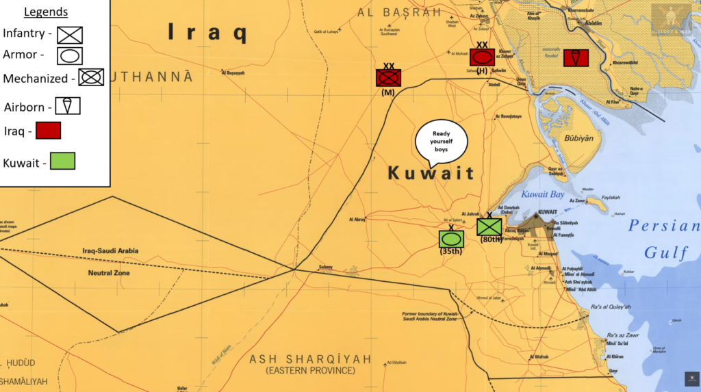 The Iraqi forces were led by Republican Guard units, which originally served as Saddam Hussein’s security force. Over time, however, the Republican Guard expanded into a full corps during the Iran-Iraq War. By the war’s end, the Guards had become Iraq’s primary striking force, often spearheading offensive operations.
